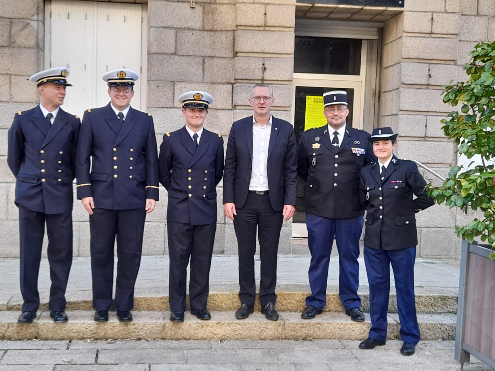 A Plouescat, la journée nationale de commémoration et de la Victoire et de la Paix a été célébrée en présence de représentants de la brigade de gendarmerie et des pompiers ainsi  que de trois aspirants de l’école navale de Brest.